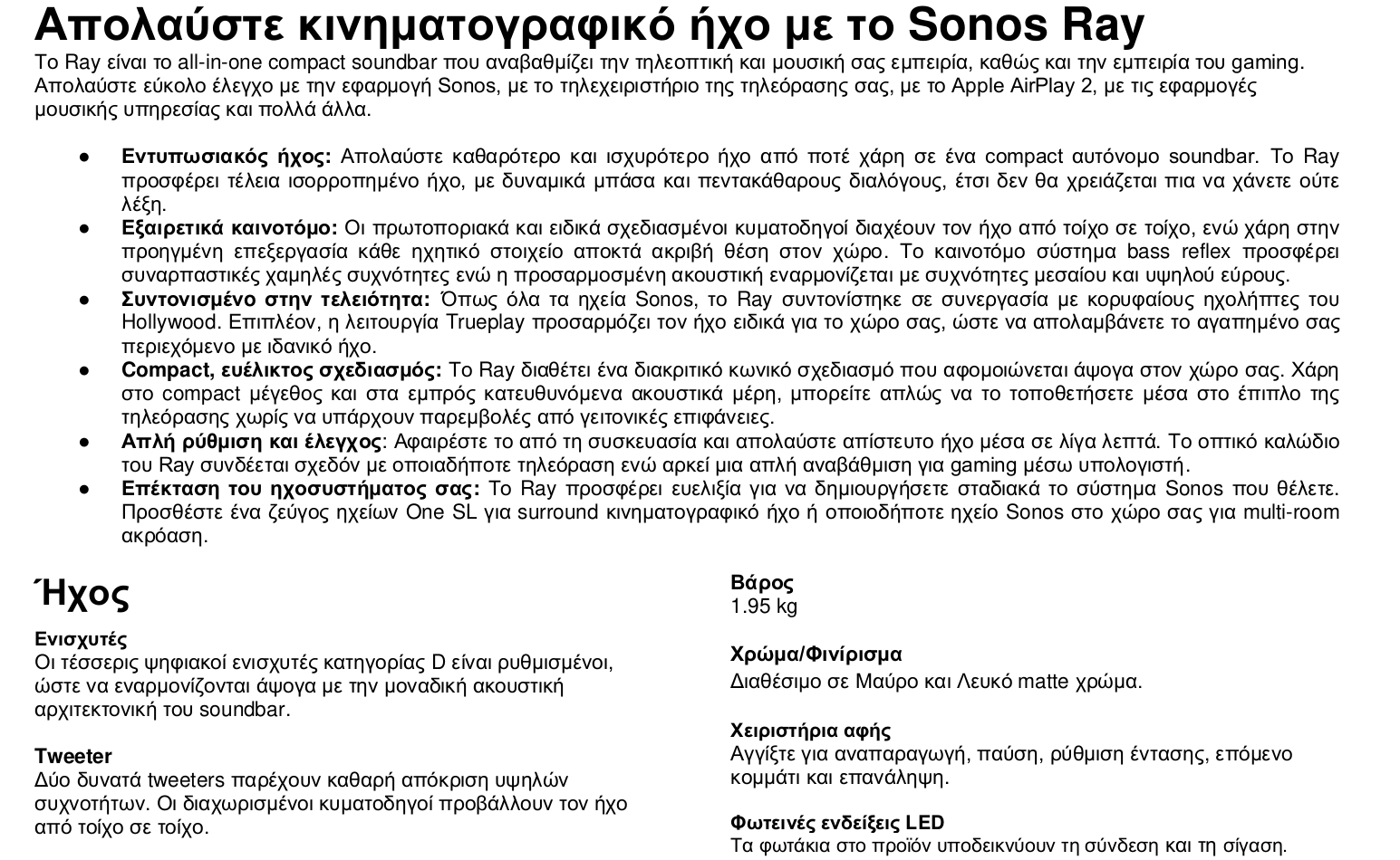 την εφαρμογή Sonos και ξεκινήστε την ακρόαση. Μπορείτε πολύ εύκολα να ελέγξετε την Ray με το