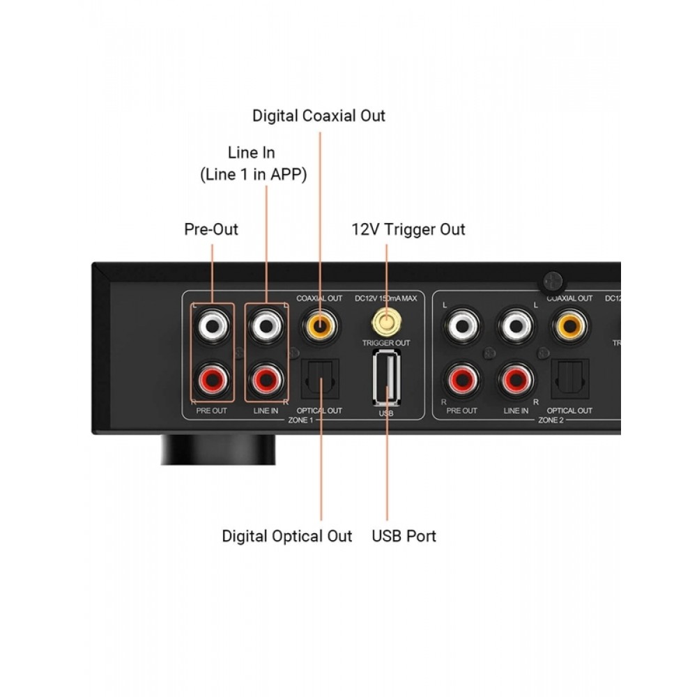 - Εκτός από την απευθείας ροή από Online Streaming Services, AirPlay και Spotify Connect, διαθέτει πολλαπλές ψηφιακές και αναλογικές εισόδους και εξόδους, επιτρέποντάς σας να συνδέσετε τα περισσότερα ηχητικά συστήματα στο σπίτι σας.