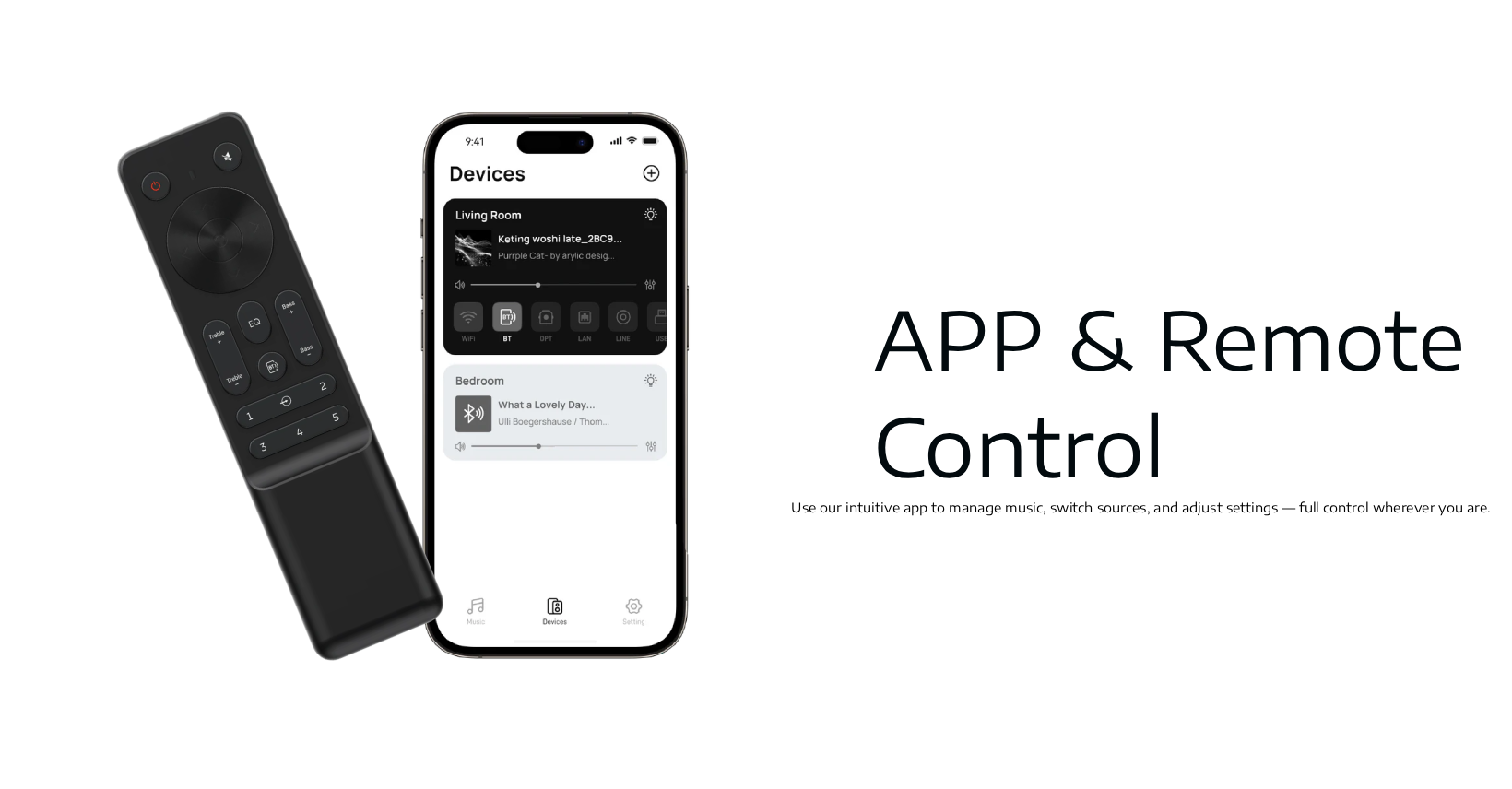 - Μεταδώστε μουσική άψογα με Wi-Fi διπλής ζώνης (2.4 GHz & 5 GHz), Bluetooth 5.4, AirPlay 2 και Google Cast. Μπορείτε να ελέγξετε την αναπαραγωγή hands-free μέσω HomePod ή Google Home, προσφέροντας πλήρη έλεγχο της μουσικής σας εμπειρίας.