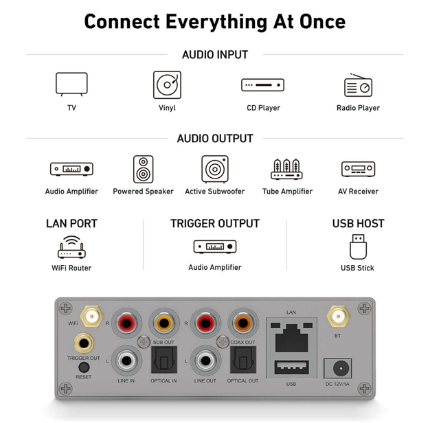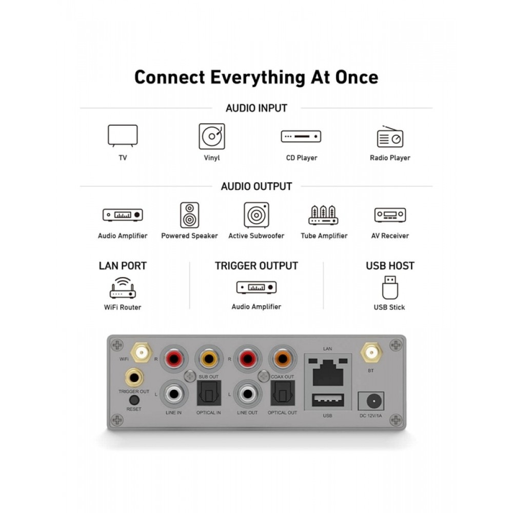 Αναβαθμίστε την εμπειρία ήχου σε όλο το σπίτι σας με το ασύρματο σύστημα streaming της Arylic, σχεδιασμένο για εύκολο έλεγχο και ήχο υψηλής ποιότητας σε κάθε δωμάτιο. Μεταδίδετε μουσική απευθείας από τη συσκευή iOS σας, Spotify, Bluetooth, NAS, USB ή online υπηρεσίες χρησιμοποιώντας την εφαρμογή 4STREAM, AirPlay ή τον web έλεγχο. Δημιουργήστε ένα προσαρμοσμένο multiroom σύστημα συνδυάζοντας συσκευές Arylic για να παίζει η ίδια μουσική σε όλο το σπίτι ή διαφορετικές πηγές σε διαφορετικά δωμάτια ταυτόχρονα. Η εγκατάσταση είναι γρήγορη μέσω Wi-Fi ή άμεσης σύνδεσης LAN, ενώ ο έλεγχος είναι απλός με ξεχωριστή ή συγχρονισμένη ρύθμιση έντασης, EQ και αναπαραγωγής. Με συμπαγή σχεδιασμό, οθόνη OLED και ευρεία συμβατότητα με ηχεία, ενισχυτές, τηλεοράσεις και AV receivers, η Arylic καθιστά τον ήχο σε όλο το σπίτι έξυπνο, ευέλικτο και ευχάριστο.