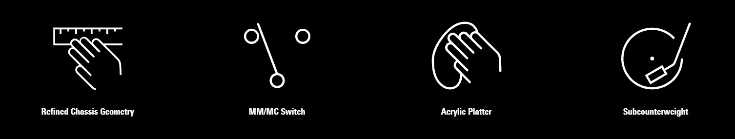 - Ενσωματωμένος προενισχυτής φωνογραφικής κεφαλής με δυνατότητα επιλογής λειτουργιών για κεφαλές MM (κινούμενου μαγνήτη) ή MC (κινούμενης σπείρας).