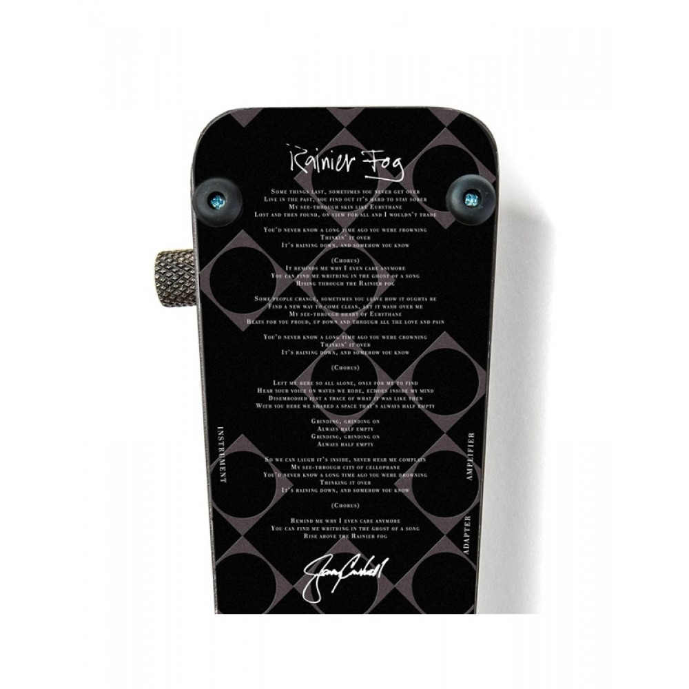 The super popular Jerry Cantrell Cry Baby Wah just got a makeover, and it's all about going back to the riff master's Seattle roots. The distressed black finish recalls the visual vibes of the Alice in Chains record Rainier Fog while the custom treadle design is based on Jerry's own tribal orca tattoo, created by Coast Salish artist Joe Wilson. As a sweet final touch, the bottom plate features the full lyrics to the song "Rainier Fog" from the aforementioned album.