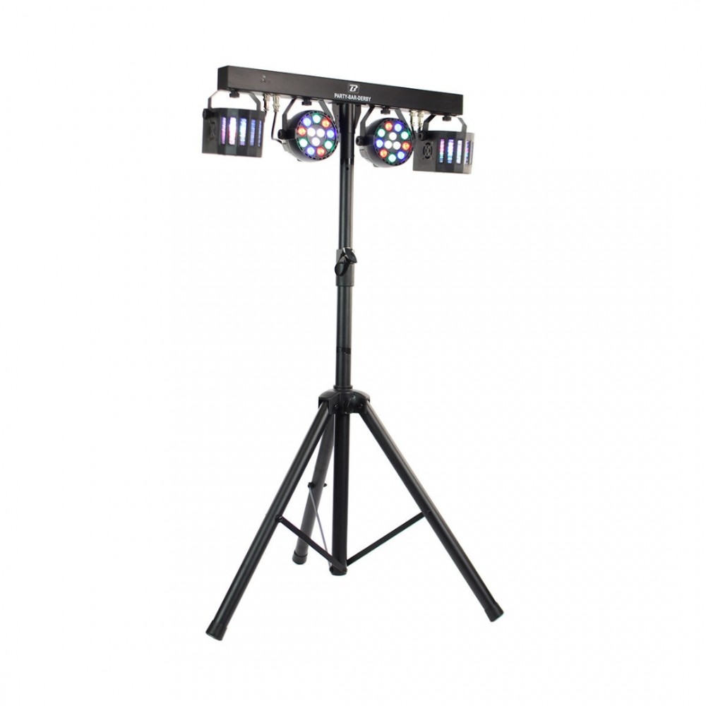 Σετ που αποτελείται από 2 προβολείς RGBW LED 1W πολύχρωμα και 2 x Nano Derby 12W,σε οριζόντια μπάρα και τρίποδο στήριξης.