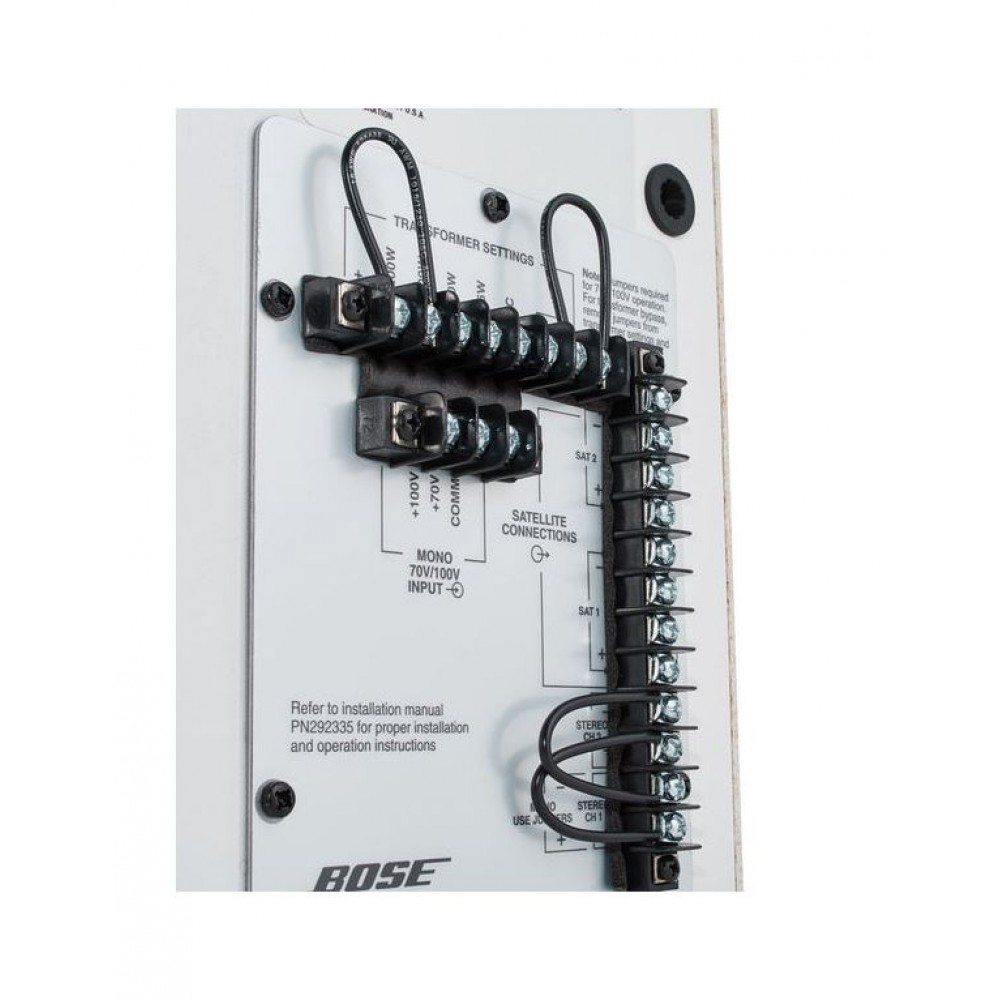 - Διαθέτει κλέμες συνδέσεων για ενισχυτή χαμηλής εμπέδησης ή 70/100V και 4 εξόδους για σύνδεση ηχείων FreeSpace Satellites