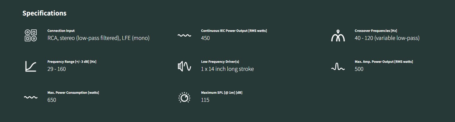 - Εξασφαλίζοντας επαρκή ισχύ για την κίνηση του μεγάλου γούφερ, ο ενσωματωμένος ενισχυτής κατηγορίας D 450 Watt RMS διαθέτει την αντοχή να συνεχίζει να λειτουργεί και τον ενεργό χώρο για να αξιοποιήσετε αυτό το μικρό επιπλέον πλεονέκτημα όταν χρειάζεται. Κατασκευασμένος για μακροχρόνια απόδοση, ο ενισχυτής τροφοδοτείται από ένα τροφοδοτικό μεταγωγής (SWPS) που βοηθά στη διατήρηση της μονάδας σε χαμηλή θερμοκρασία λειτουργίας και αποτρέπει την ανάγκη για εξωτερικό ψύκτη. Μπορείτε να διαβάσετε περισσότερα σχετικά με αυτό στο έγγραφο SUB K-14 F που είναι διαθέσιμο στην ενότητα λήψεων παρακάτω.