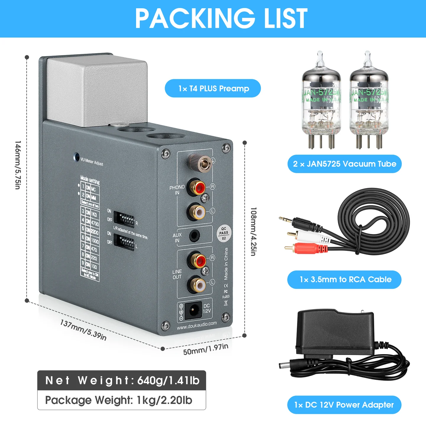 Douk Audio T4 PLUS HiFi Vaccum Tube Phono Preamp for Turntable Stereo Preamp Headphone Amp w/VU Meter