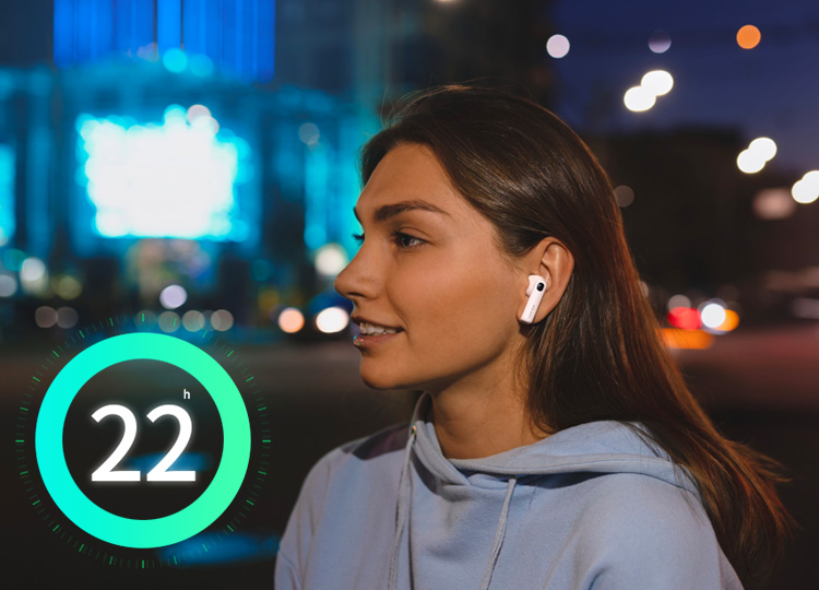 - Η διάρκεια ζωής της μπαταρίας διαρκεί έως και 56 ώρες με τη θήκη φόρτισης, ενώ διατίθεται και γρήγορη φόρτιση - 15 λεπτά φόρτισης παρέχουν 5 ώρες αναπαραγωγής.