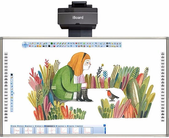 Διαδραστικός πίνακας 78,9" (ενεργή διαγώνιος). Τεχνολογίας υπερύθρων δέκα (10) σημείων αφής, προσφέρει μεγάλη ακρίβεια (32768x32768 ανάλυση), εξαιρετική απόκριση στο γράψιμο. Δουλεύει σε συνεργασία με ένα ηλεκτρονικό υπολογιστή και ένα βιντεοπροβολέα.