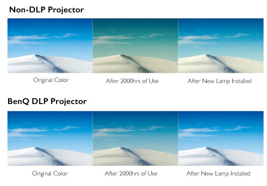 With sealed design that protects the DLP chip from dust-induced image degradation and the industrial-grade durability of DLP projection technology, BenQ education projectors are capable of maintaining long-lasting picture quality by eliminating color decay. Unlike non-DLP projectors, BenQ education projectors deliver premium picture quality equivalent to the result from brand new projectors after lamp replacement.