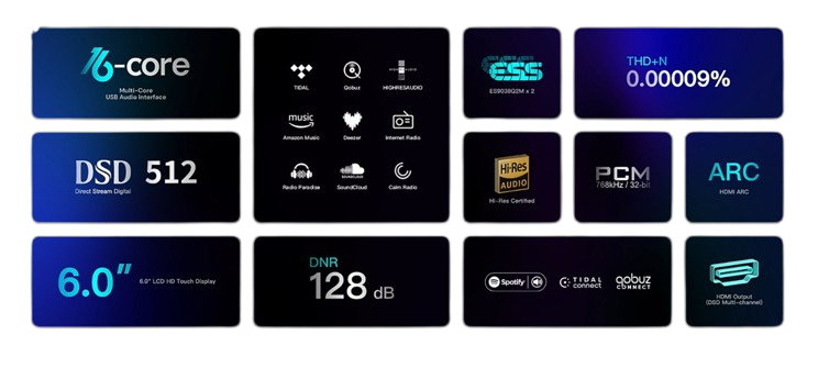 - Supports up to Stereo DSD512 Native, PCM 768KHz 32Bit, MQA Format
