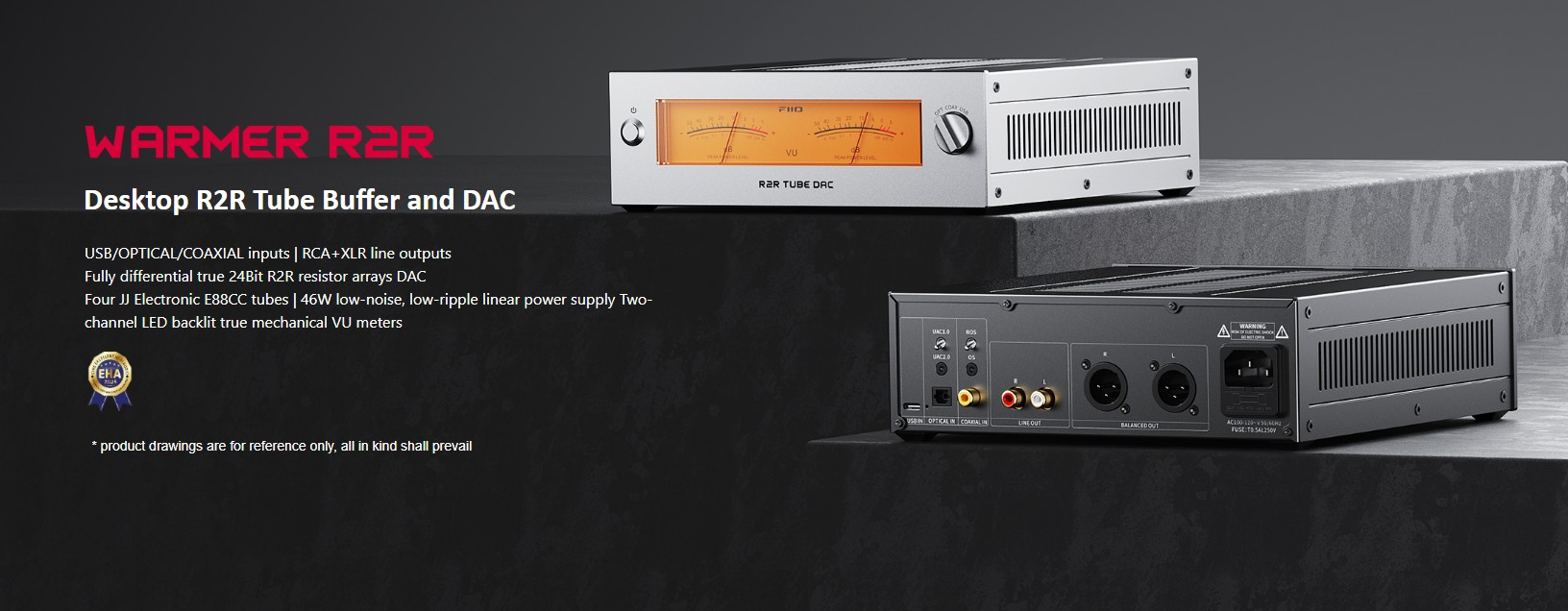 - "Η αναλογική μαγεία επιστρέφει. Το FiiO Warmer R2R είναι ένα μοναδικό Desktop DAC που συνδυάζει την φυσικότητα της αρχιτεκτονικής R2R με τη μουσικότητα των λυχνιών (Tubes). Με ρετρό σχεδιασμό, αναλογικά VU meters και κορυφαία ποιότητα κατασκευής, προσφέρει τον απόλυτο 'ζεστό' ήχο για απαιτητικά Hi-Fi συστήματα."