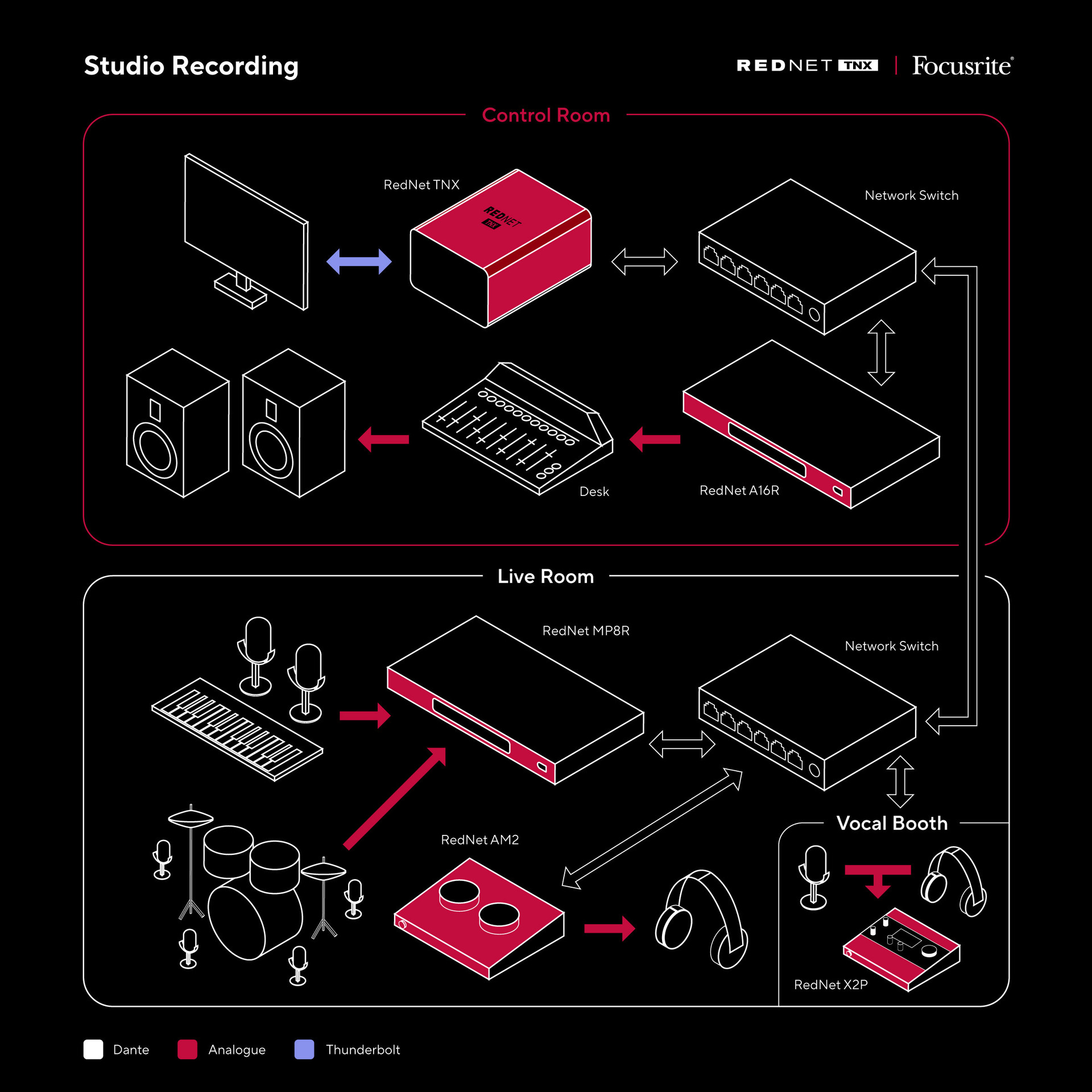 FOCUSRITE REDNET TNX 128 X 128 Thunderbolt and Dante interface