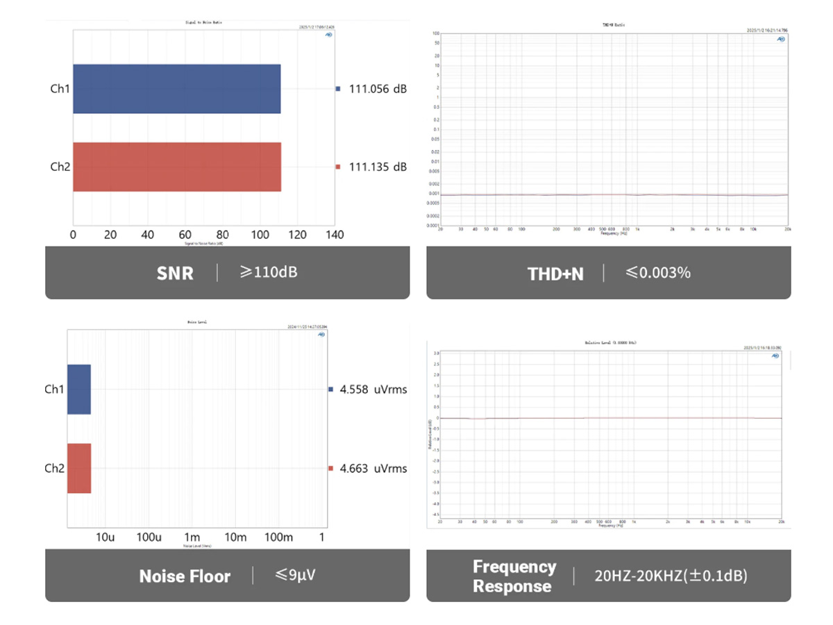 - 20Hz – 20kHz (±0.1dB)