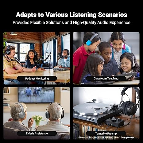 - Επαγγελματικός ενισχυτής διαχωρισμού: Το PH05 είναι ένας ευέλικτος στερεοφωνικός διαχωριστής/ενισχυτής ακουστικών με μία είσοδο και πέντε εξόδους, που σας επιτρέπει να συνδέσετε έως και πέντε ζεύγη ακουστικών ταυτόχρονα, προσαρμοζόμενος σε πολλαπλά σενάρια κοινής χρήσης και διανομής ήχου. Είτε πρόκειται για επαγγελματική παραγωγή μουσικής στο στούντιο, podcasting, διδασκαλία ή καθημερινή χρήση, όπως για παράδειγμα από ηλικιωμένους που παρακολουθούν τηλεόραση, θα αποτελέσει τον ιδανικό σύντροφό σας.