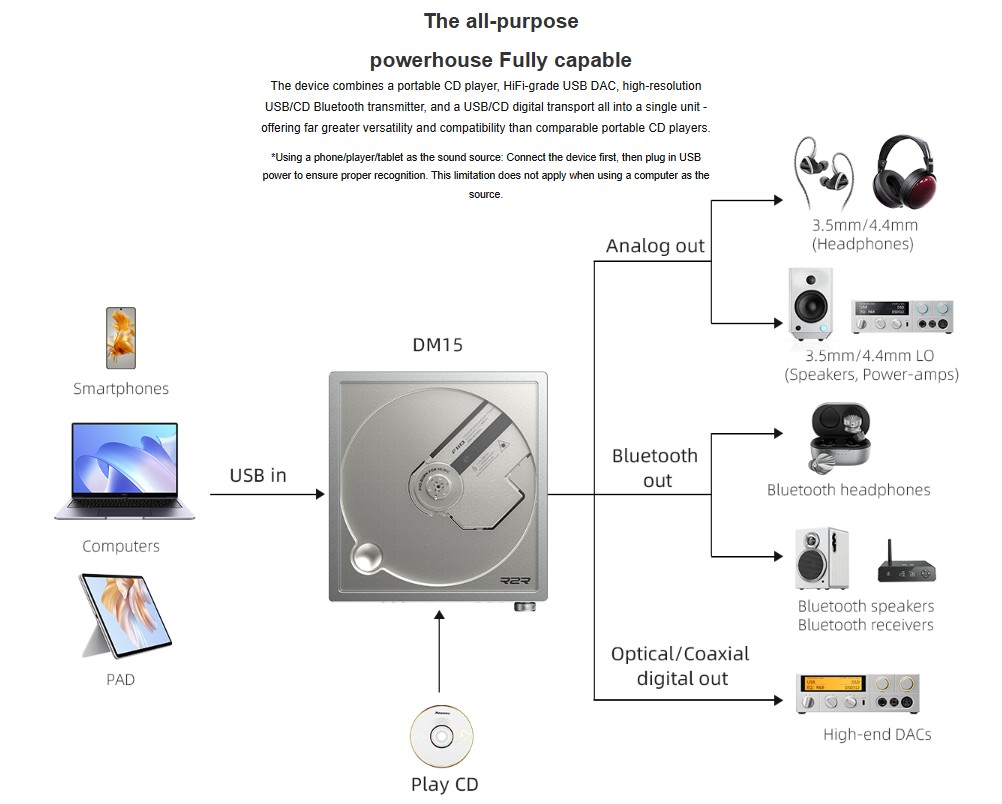 • Ανακαλύψτε ξανά τη δισκοθήκη σας. Το FIIO DM15 R2R μετατρέπει κάθε CD σε μια ζωντανή παράσταση. Αποκτήστε το και ακούστε τη μουσική όπως πραγματικά ηχογραφήθηκε.