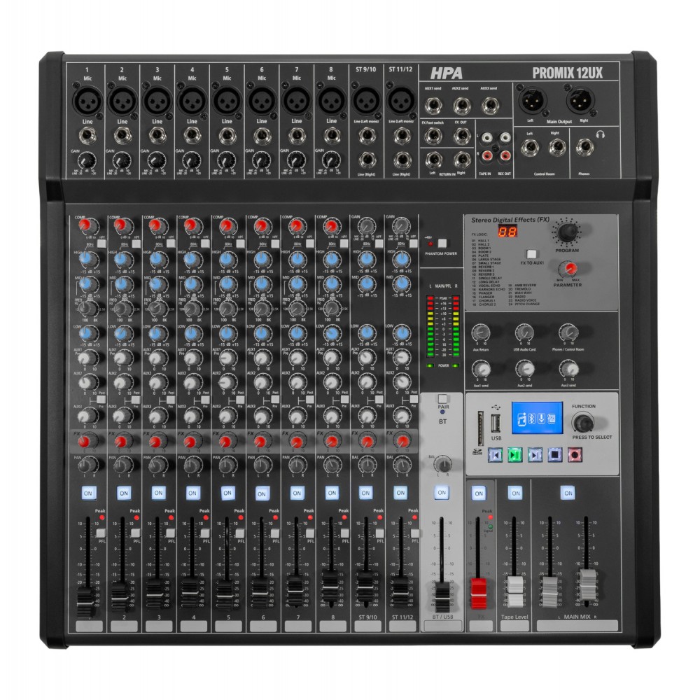HPA PROMIX12UX Κονσόλα Μίξης Ήχου 12 Kαναλιών με Effect, DSP, Bluetooth, USB/SD Card