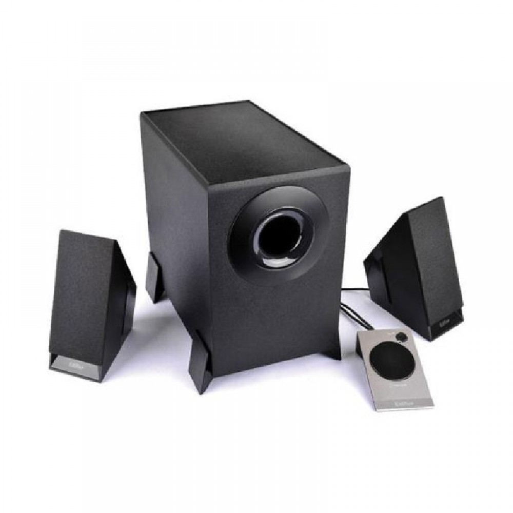 Overview:M1360 2.1 multimedia speaker Wooden MDF enclosed, 4 inch subwoofer with front bass reflextion port Uniquely designed downward angled subwoofer Two compact, upward angled satellites Magnetically-shielded satellites and subwoofer Wired volume control with audio mute button 3.5mm auxiliary input and RCA input