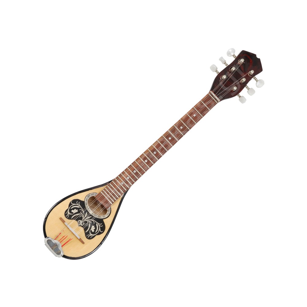 Μπαγλαμάς με "σκαφτό" σχεδιασμό και σκάφος απο φλαμουριά. Το καπάκι είναι από έλατο ενώ η ταστιέρα απο ξανθό έβενο.