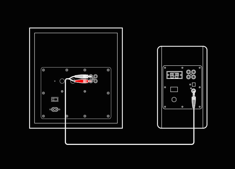 - Εάν το κύριο σύστημα ηχείων δεν διαθέτει θύρα subwoofer, συνδέστε την είσοδο ήχου του στις θύρες Signal Out του subwoofer. Στη συνέχεια, συνδέστε τις θύρες Signal In του subwoofer στην έξοδο της πηγής ήχου.