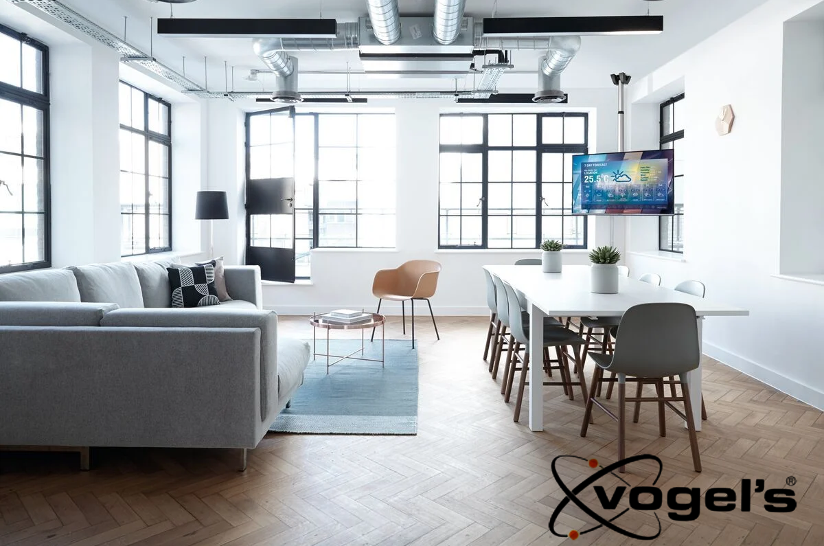 - Η βάση οροφής PFC 585 είναι κατασκευασμένη για τηλεοράσεις με VESA 200 x 200 και μέγιστο βάρος 20 kg/44 lbs. Μπορεί να έχει κλίση έως και 20 μοίρες. Περιλαμβάνει μια λειτουργία ισοστάθμισης που διευκολύνει την ανάρτηση του στηρίγματος σε πλήρη ισορροπία. Ένα σύστημα τοποθέτησης καλωδίων εξασφαλίζει ότι όλα τα καλώδια είναι καλά κρυμμένα από τα οπτικό πεδίο. Το στήριγμα είναι στιβαρό και σταθερό, καθώς η ασφάλεια έχει ύψιστη σημασία για την Vogel’s.