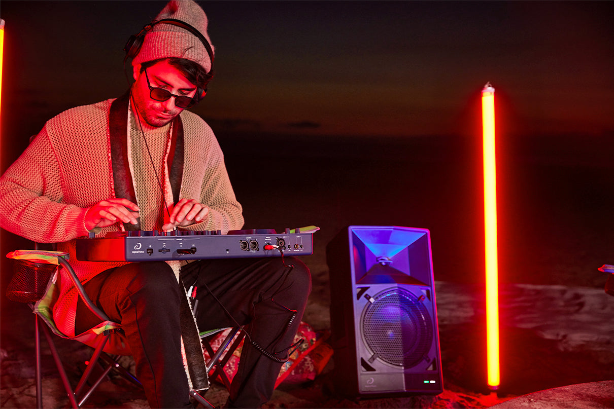 Take the included transmitter out of its storage compartment on the WAVE-EIGHT and connect it to your DJ gear, and you can instantly create a wireless connection, enabling you to throw a DJ party anywhere you want. And if you combine the WAVE-EIGHT with the new OMNIS-DUO portable all-in-one DJ system, which features battery power, you can play cable-free for total freedom.