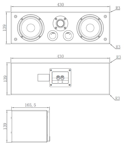 Περιλαμβάνει, 2 χαμηλών-μεσαίων drivers των 4 ιντσών, tweeter 1 ίντσας με υφασμάτινο κώνο και μπροστινό bass reflex. Είναι βαμμένο με 6 στρώσεις βερνικιού που προστατεύουν από την υπεριώδη ακτινοβολία και διατηρούν το χρώμα σε άριστη κατάσταση.